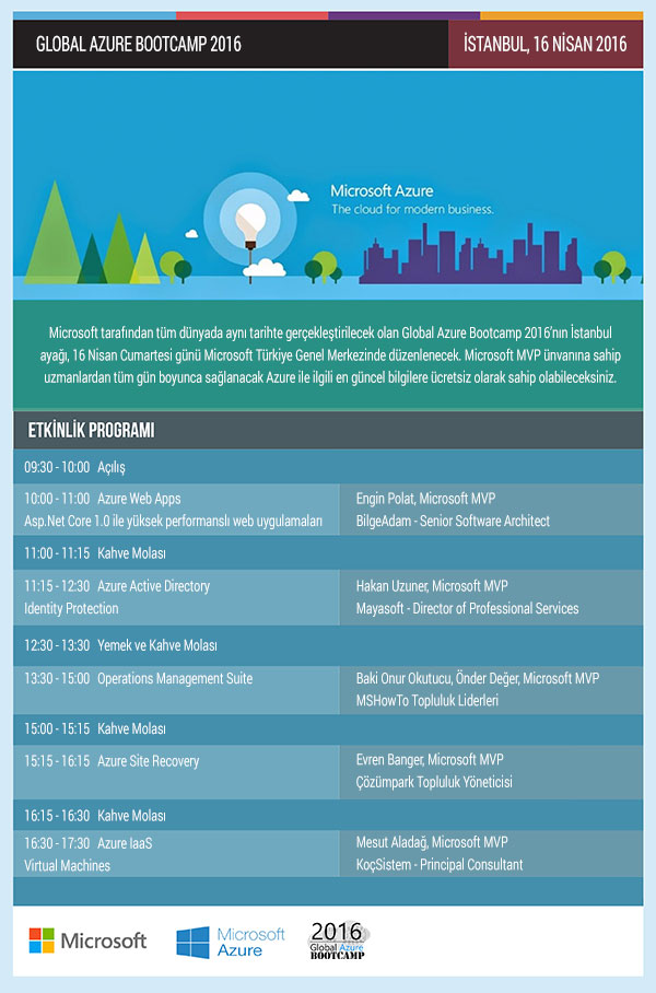 Türkiye‘de İstanbul ve Ankara‘da bir tam gün boyunca sektör tecrübesi olan uzmanlarca gerçekleştirilen Global Azure Bootcamp içerisinde ben de Asp.Net Core 1.0 ile Yüksek Performanslı Web Uygulamaları konulu oturum gerçekleştirdim.